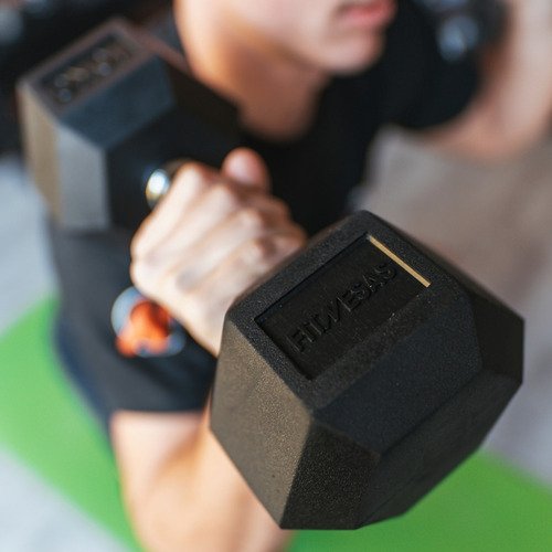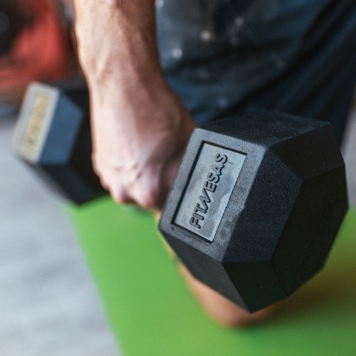 Mancuerna Hexagonal Engomada 5 Kg Goma Pesa Maciza Fitnesas Color Negro