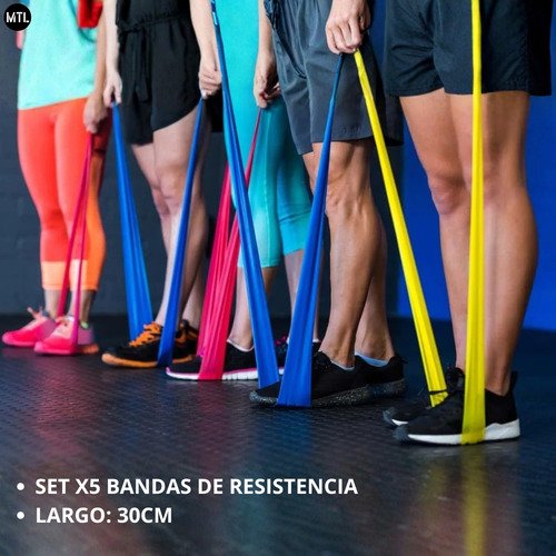 Set X5 Bandas De Resistencia Mtl Gomas Elásticas Entrenamiento Fuerza Fitness Pilates Crossfit Yoga Calistenia Rehabilitación Diferentes Niveles Tensión Ultraligeras Con Bolsa Transporte