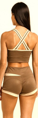 Conjunto Deportivo De Mujer Bicolor Top + Short Yoga Verano