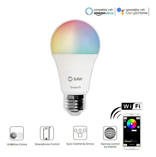 Pack X 4 Lamparas Led Rgb Wifi Baw A60 10w App Smartlife E27