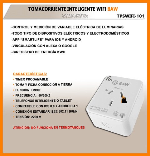 Envíos gratis en el día ✓ Comprá online de manera segura con Compra Protegida © Enchufe Inteligente Wifi Baw Smart 220v Celular Alexa Google ❤