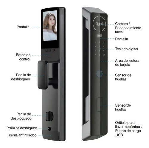 Cerradura Inteligente Wifi Camara Huella Biometrica Smart Negro