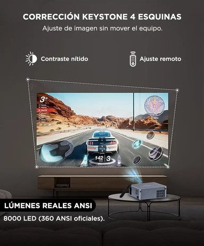 Proyector Gadnic Cinemax FHD 1080p LED 8000 Lúmenes BT Conexión Inalámbrica