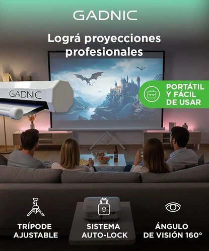 ✓ Comprá online de manera segura con Compra Protegida © Pantalla Proyector Gadnic 120 Trípode Alta Definición Sistema Auto-Lock Ángulo 160 ❤
