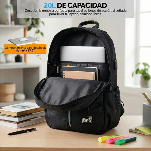 ✓ Comprá online de manera segura con Compra Protegida © Mochila Porta Notebook 15.6&quot&quot Urban Viaje Waterprof Oxford Musette Negro 20L ❤