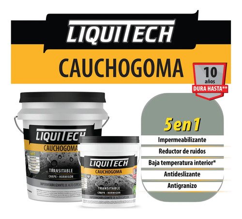 Membrana Liquitech Cauchogoma Impermeabilizante Techos 10kg Gris Mate